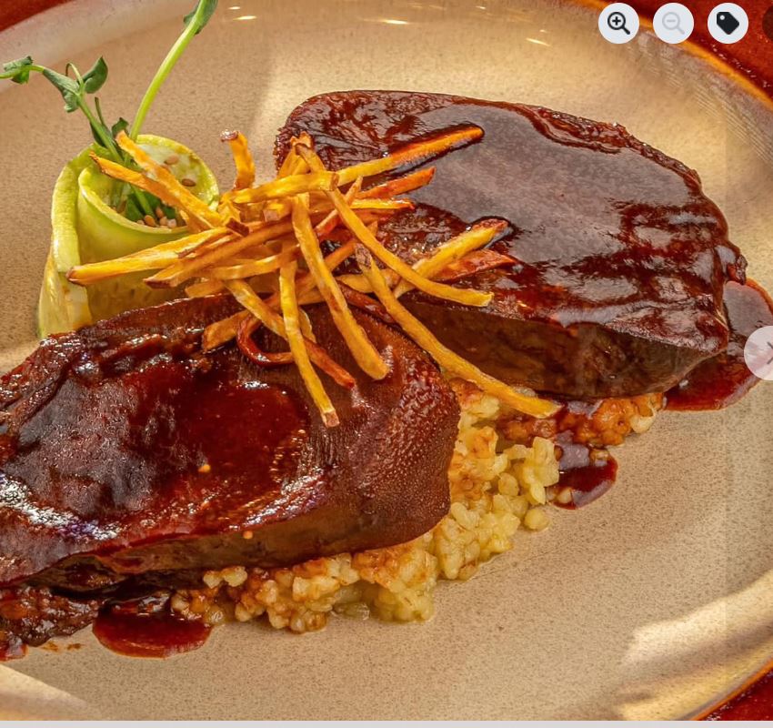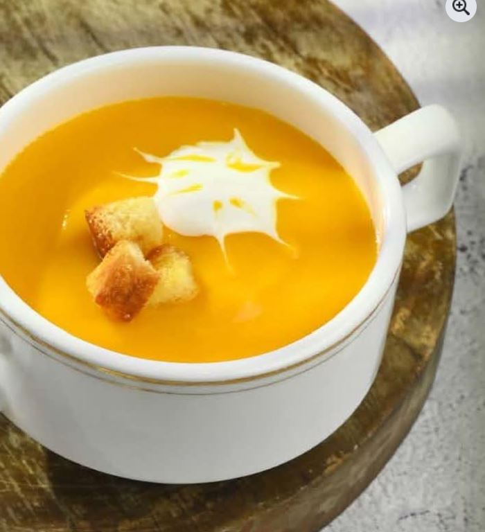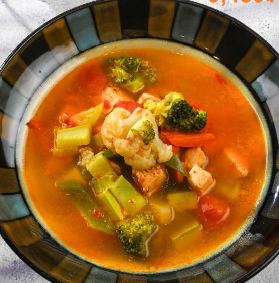 High-quality meat, tender mushrooms, and a delicious soup with red peppers.