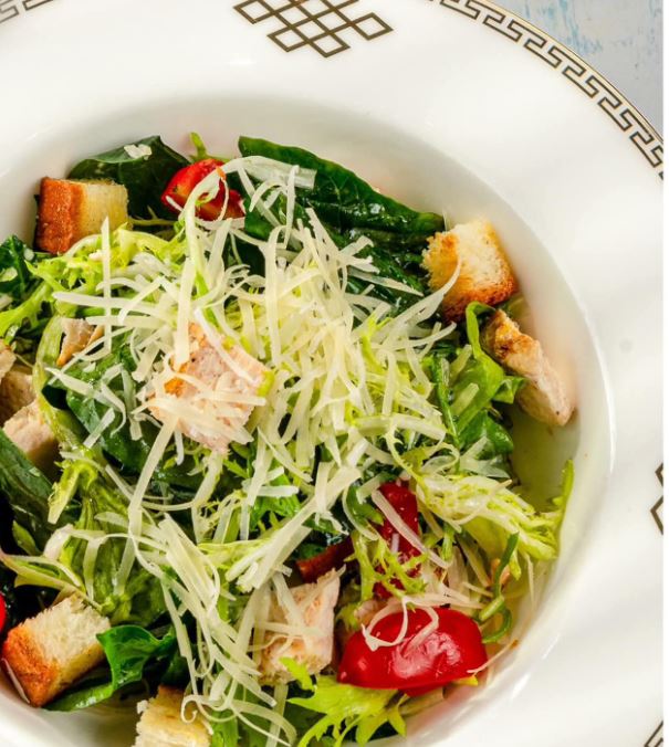 Beef steak, salad, cheese, croutons, classic dressing.